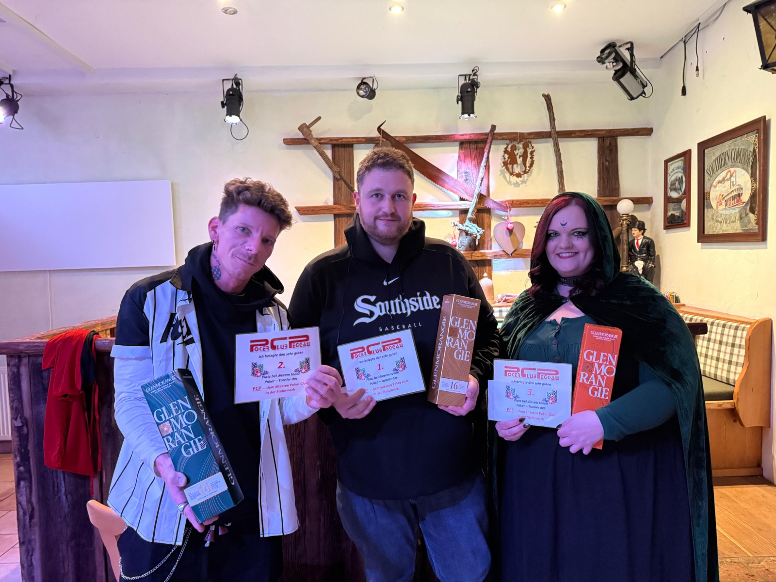 Ein großer Dank gilt der Familie Victoria und Peter Matzer! Sie haben die ersten vier Plätze gesponsert. Feinster schottischer Highland-Whisky von Glenmorangie und einen Kilo Rumkugeln für Platz vier! Einen herzlichen Dank dafür. Victoria hatte auch ein kleines Präsent für jeden dabei.