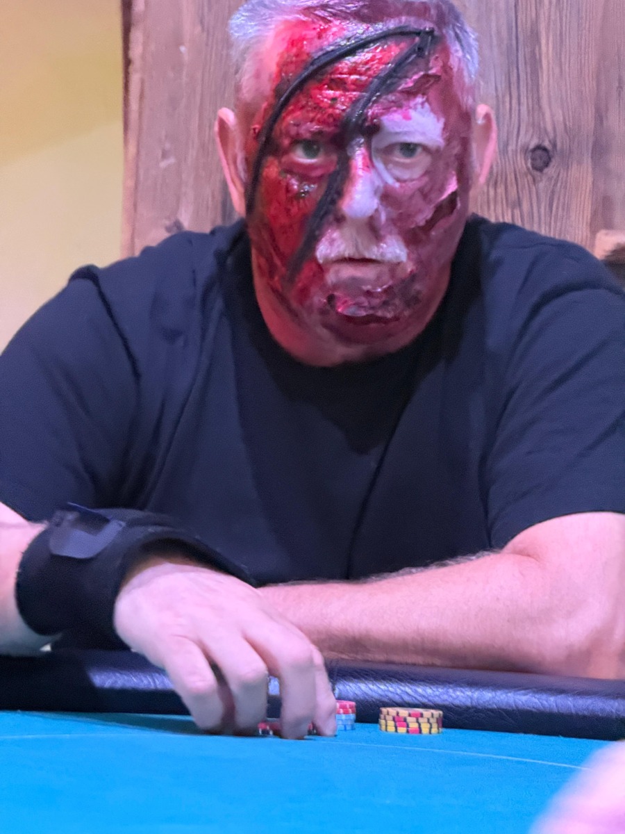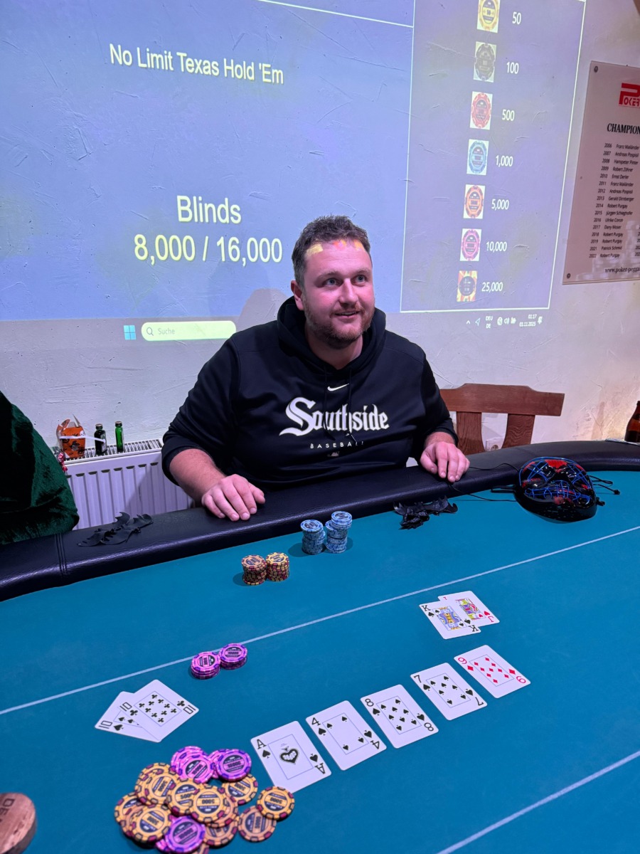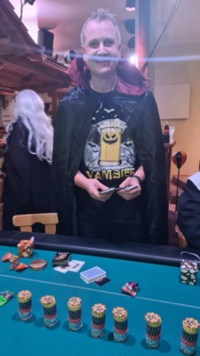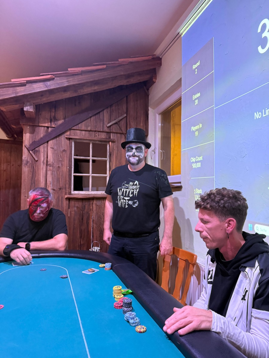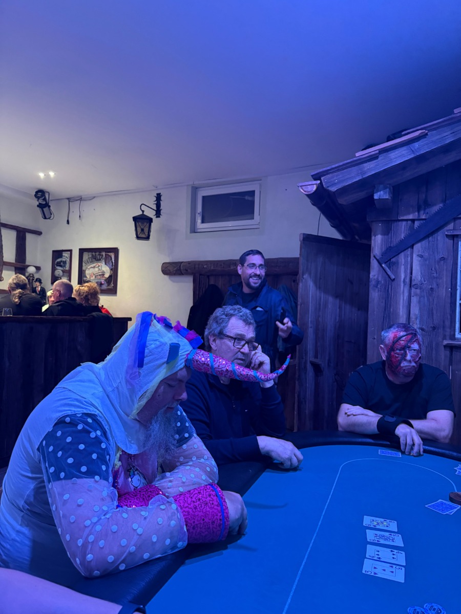 Er erschien an diesem Tag in mehreren Gewändern. Als Obmann, Jigsaw und vereinzelt auch als Mickie Krause. Sein Paar 7 ließ ihn gegen das Bubenpärchen von Sarah verblassen. Robert Purgay – Platz sieben wegen der Sieben und – Bubbleboy. Egal: Dem Obmann machte es so viel Spaß, dass er daran denkt, auch 2026 seine Halloween-Kreaturen zu einer Partie Poker einzuladen!