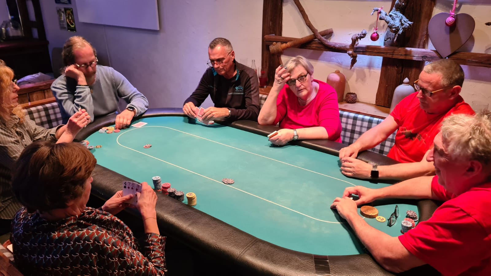 Aber auch all die Routine, mit der Peter Fontana und auch Edeltraud Vipauz sich hier ihren Tischnachbarn stellten, blieb irgendwann ganz sicher viel zu früh unbelohnt. Edeltraud dealte daraufhin an ihrem Tisch und ermöglichte so ein entspannteres Spielen. Herzlichen Dank dafür. Natürlich auch all jenen, die es ihr gleichgetan haben.