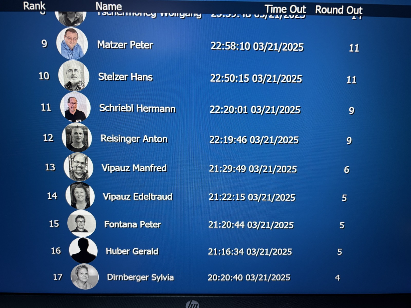 Es dauerte fast eine Stunde, bis Anton Reisinger knapp vor Hermann Schriebl die Segel streichen musste. Nachdem nun auch Hans Stelzer und Peter Matzer das Turnier ihrer spielerischen Leistung völlig unbedankt verlassen mussten, wurde der FINALTABLE eröffnet.