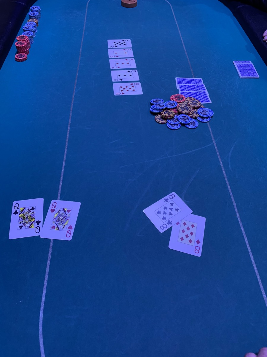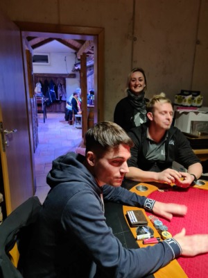 Manfred Schönegger (5), der an diesem Abend gleich wie Martin Platzer ein Straight Flush hatte, wurde innerhalb von 2 Händen von Obmann Robert Purgay mit geflopptem 10er Poker und danach von Martin mit Poker 8 vom Tisch genommen.