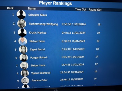 Um die Top-5-Plätze ritterten die 2 verbliebenen Gastspieler Markus Krusic und Klaus Schuster bzw. Peter Matzer, Bernd Zigart und Wolfgang Tschermoneg.