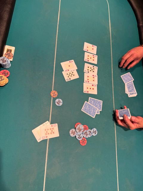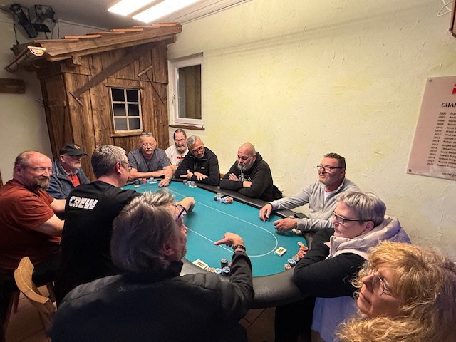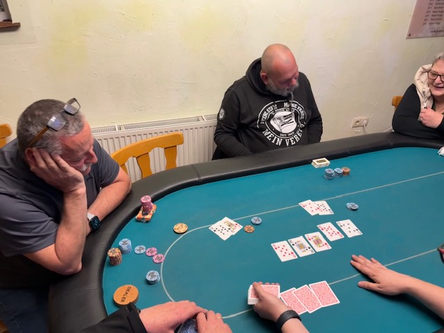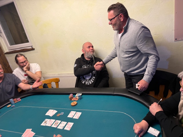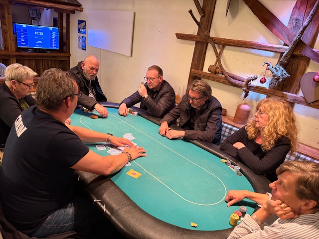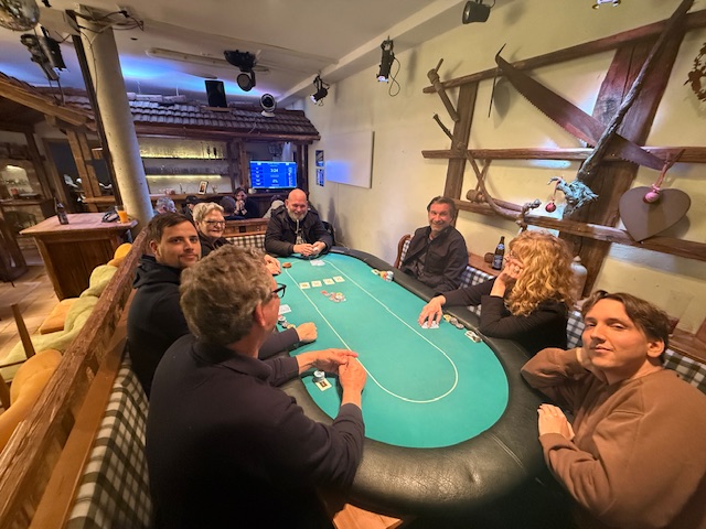 Nur einige Minuten danach schieden auch Margarete Scherz und unser Obmann Robert Purgay aus. Mit Platz 11 gab es diesmal keine Punkte! Den 10. Platz erreichte unser zweiter Gastspieler David Gfrerer. Somit konnte um halb zwölf der Final Table gestartet werden, der diesmal von Wolfgang Tschermoneg gedealt wurde. Vielen Dank! Und da ging es gleich voll zur Sache! Im Minutentakt verabschiedeten sich Robert Zöhrer als Neunter, Peter Matzer (8. Platz) und der Führende in der Meisterschaft, Anton Reisinger. Für ihn sind es wieder wertvolle Punkte in der Meisterschaft! Den 6.Platz erreichte die beste Frau, diesmal war es Sylvia Dirnberger.