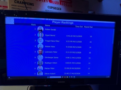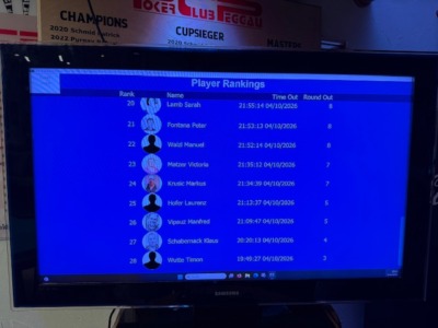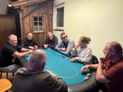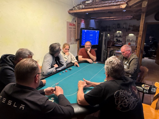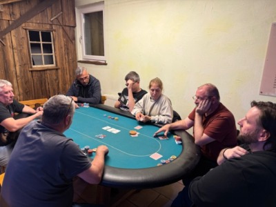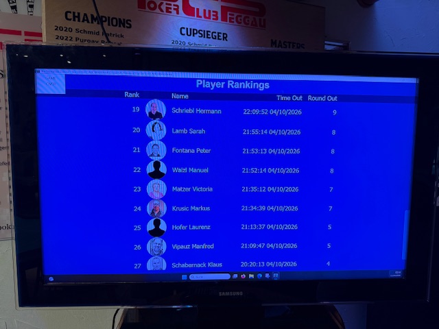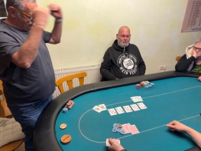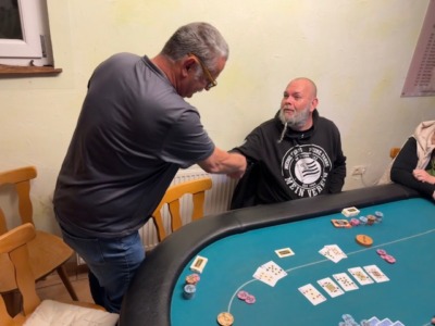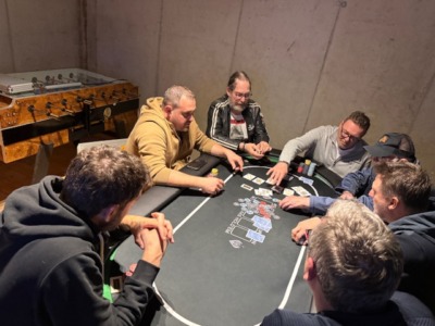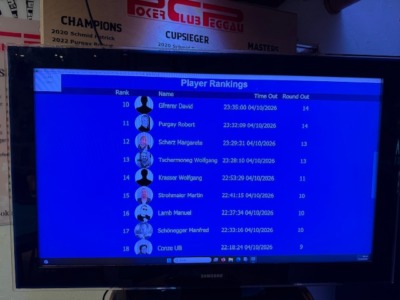 Diesmal konnte der PCP drei Gäste begrüßen, wobei für den ersten Gast, Timon Wutte, das Turnier nach knapp 50 Minuten schon wieder vorbei war! Kurz vor der Pause erwischte es auch Klaus Schabernack. Er konnte sich danach voll auf die Turnierleitung konzentrieren, die er zusammen mit Sarah Lamb als Generalprobe für das nächste Turnier hatte. Nach der Pause verabschiedeten sich gleich Manfred Vipauz und Laurenz Hofer, der diesmal ausnahmsweise kein Bounty gewann. Für Wolfgang Tschermoneg lief es auch nicht nach Wunsch. Trotz harten Kampfes reichte es nur zu Platz 13.