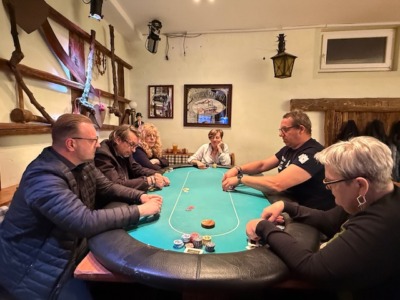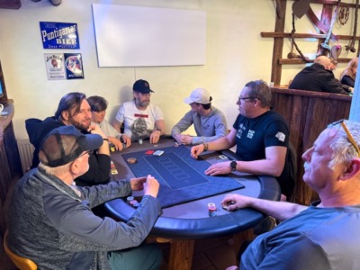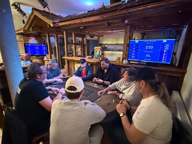 Am Freitag, dem 10. April, stand die zweite Runde der Tour dei Vini am Programm. Da diese Turnierserie heuer zur Meisterschaft zählt, war der Keller beim Absenger mit 28 Pokerspielern (und einem Hund) wieder einmal gut gefüllt. Auf 4 Tischen wurde die Variante „Win the Button“ gespielt. Da bei dieser Variante der Gewinner der letzten Hand den Dealer-Button erhält, wurde diesmal bis zur Pause auf fixe Dealer verzichtet.